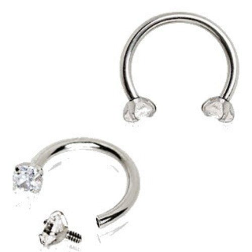 316L Stainless Steel Internally Threaded Horseshoe with Prong Set CZ